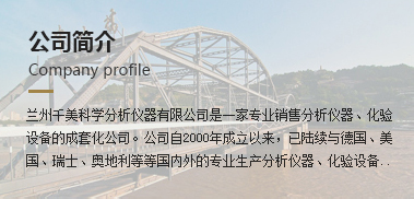 蘭州千美科學(xué)分析儀器有限公司是一家專業(yè)銷售分析儀器、化驗設(shè)備的成套化公司。公司自2000年成立以來,已陸續(xù)與德國、美國、瑞士、奧地利等等國內(nèi)外的...